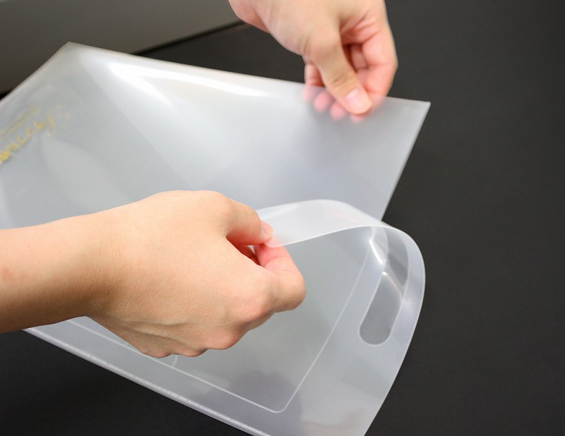 バッグとして使用したあとは、切り取って、クリアファイルとして使用可能!