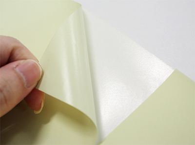 PP加工とは、素材の上に薄めのポリプロピレンフィルムを接着剤で圧着させる加工法です。