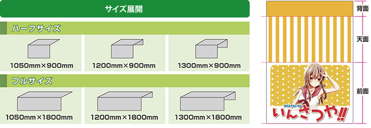 イベント用テーブルクロスの中には特定の机の形に合わせて、机の天板がすっぽり収まるように裁縫されたクロスがあります。