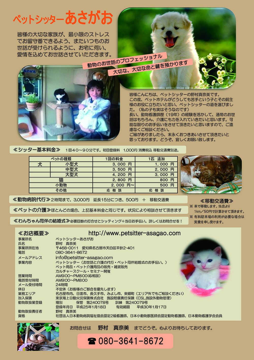 自分で作ったちらしを500部ほどポスティングしたりしましたが、やはりインクでの印刷は、見るから手作りの安っぽさから、信頼が大切な私の職業(ペットシッター)には適さず、かと言って資金もないため慎重に、焦らず印刷会社の情報を集めました。