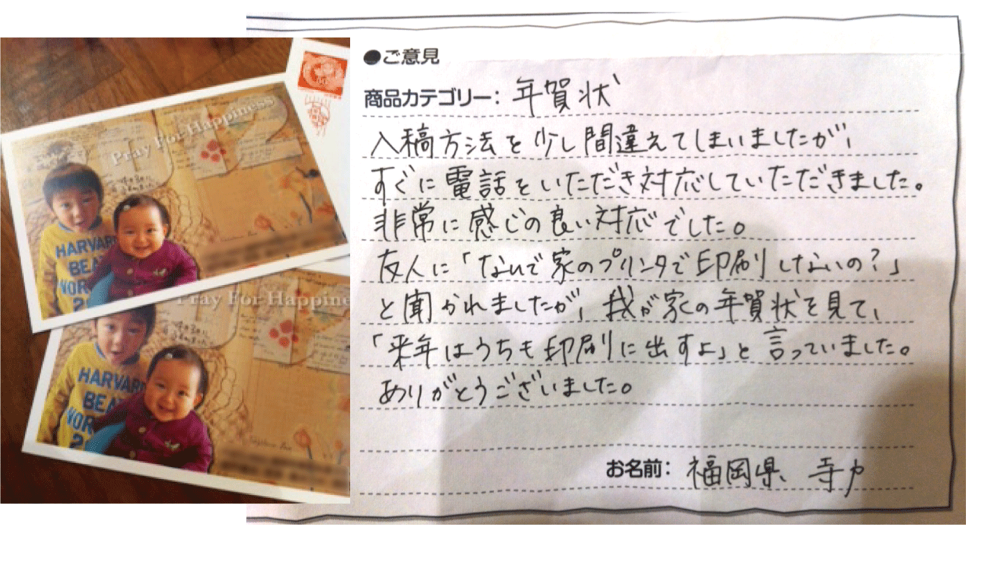 当社のオンデマンド機による「オリジナル官製年賀状印刷」の仕上がりにご満足いただき、誠にありがとうございました。