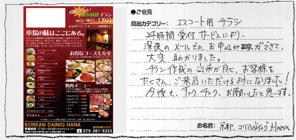 チラシ作成の出来が良く、お客様をたくさんご来店いただけるようになりました!