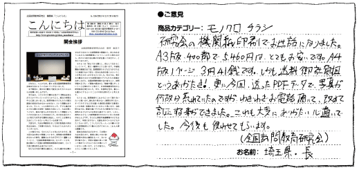 研究会の機関紙印刷でお世話になりました。A3版、400部で5,460円はとてもお安いです。A4版1ページ3円41銭です。しかも送料御社負担というありがたさ!