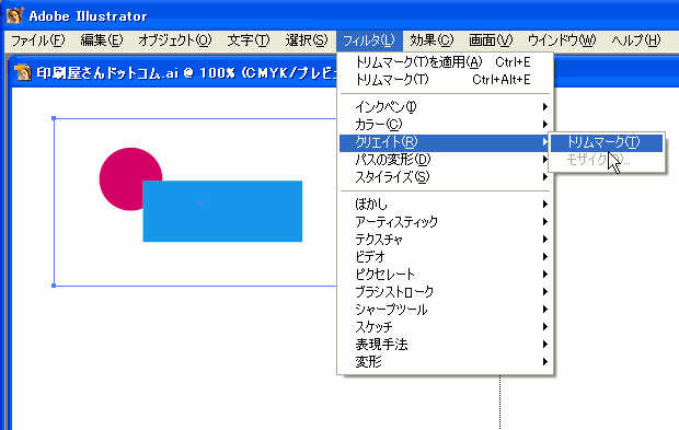 2)塗りと線のカラーをなしにして[フィルタ]→[クリエイト]→[トリムマーク]を選択