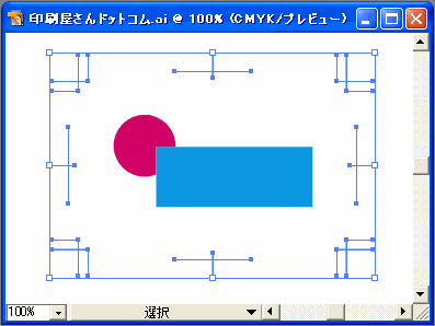 1)仕上がりサイズ(アートボード)に合わせて、長方形(四角)を作成します。