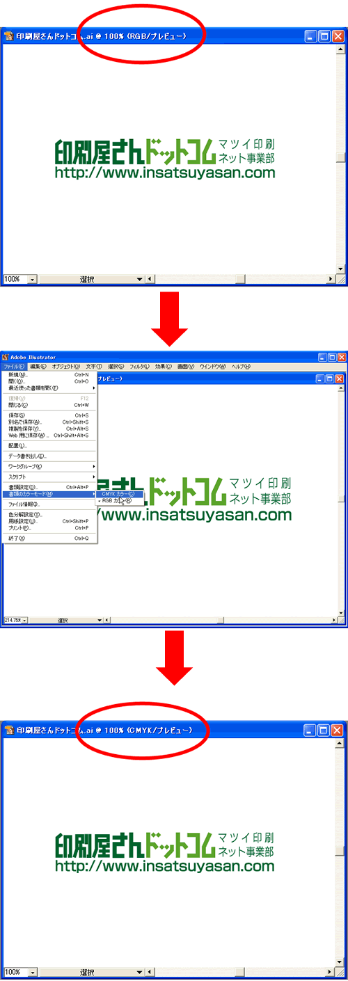 2.「フィルター」→「カラー」→「CMYKに変換」