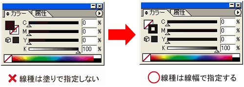 パスの線は「塗り」で指定するのではなく、「線種」でカラー指定してください。