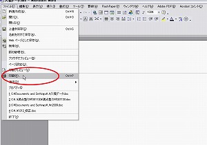 PDFに書き出すデータを、制作したOfficeソフトで開き、「ファイル」メニューの中の「印刷」をクリックします。