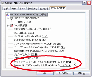 c.「OK」をクリックして、Acrobat Distillerのプロパティ画面に戻ります
